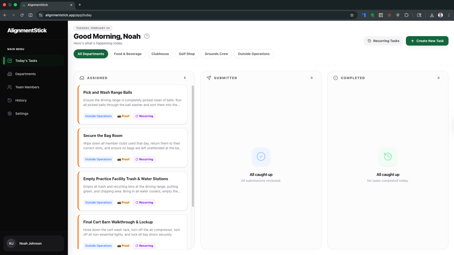 The command center for golf operations. Assign tasks, require photo proof, and eliminate the gray area between "done" and "done right."